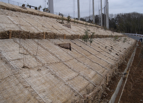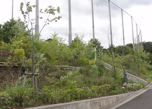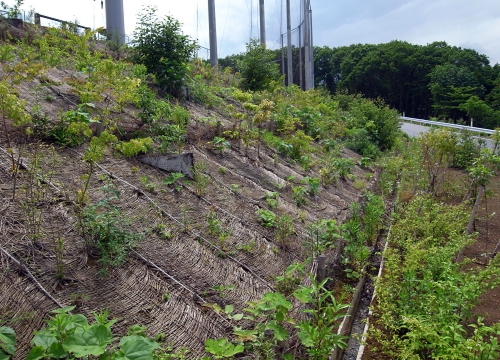 「植栽遷移に配慮した生物多様性の高い森づくり」をコンセプトに、自然配植緑化による樹林化技術と時間とともに苗木の育成をアシストする法面保護工を開発し、森の回復を図ったプロジェクト。弊社は、植栽計画を担当した。