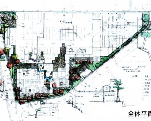 隣地(元学校)の樹木を移植し、レストランから「花見」が出来る景観を創出。